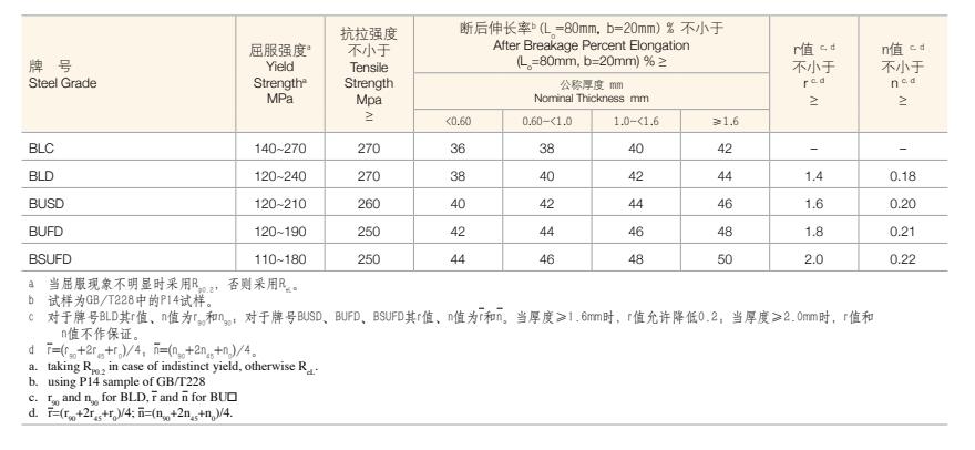 低碳和超低碳鋼鋼板及鋼帶之力學及工藝性能