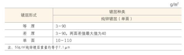 4、鍍層可供重量范圍如下表的規定