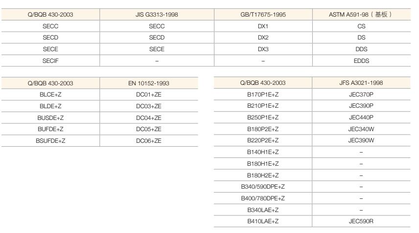 1、電鍍鋅牌號與基板牌號對照表