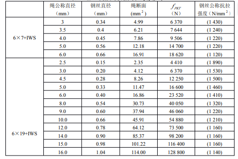 不銹鋼絲繩強(qiáng)度標(biāo)準(zhǔn)值(GB9944-88)