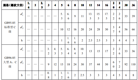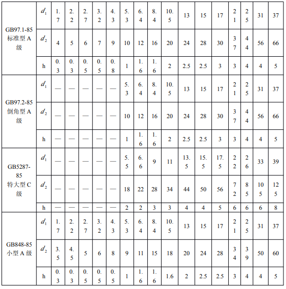 鋼結構用扭剪型高強度墊圈的規格、尺寸及重量