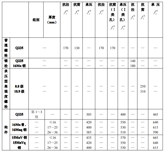 螺栓連接的強度設計值